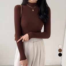 LnD 여성 골지 반목폴라 니트티 슬림핏 데일리 이너 하프넥 니트 목폴라 기본 베이직