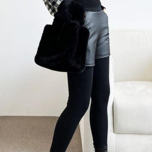 yuviny (유비니) 여성 기모 레이어드 반바지 레깅스 KZ0001