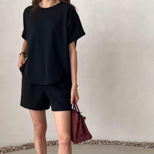 [셀럽하우스]캐주얼룩 KYRC6283 모던 반팔 마실룩 투피스세트 반바지