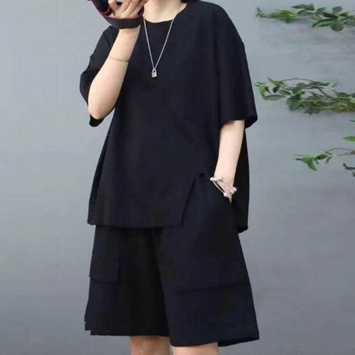 빛나는 판다여성 여름 얇은 정장세트 빅사이즈 반팔 세미 정장 자켓 반바지 캐주얼 투피스세트빛나는 판다