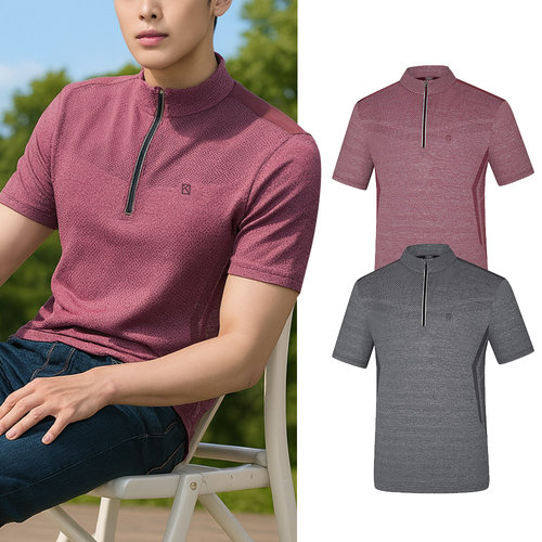 차이나 카라 반집업 남성 2컬러 반팔 티셔츠