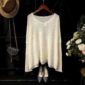 [오노마] ONM 여성 방한 루즈 스타일 오버 핏 반짝이 펄 니트 티