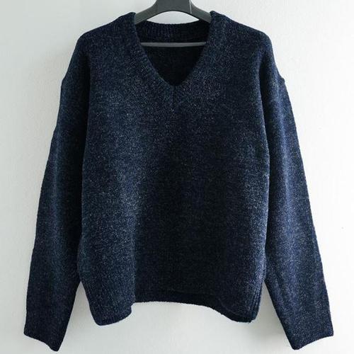 (스타일하우스) 니트티 스웨터 티셔츠 펄 반짝이 오버 루즈 핏 네이비 브이넥티 여성 니트
