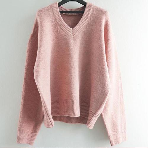 (스타일하우스) 니트티 스웨터 티셔츠 핏 여성 핑크 니트티 오버 브이넥 루즈 펄 반짝이