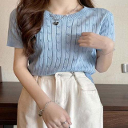 [셀럽하우스]여자 CMIE1673 클래식 소프트 꽈배기 여름 케이블 반팔 니트티