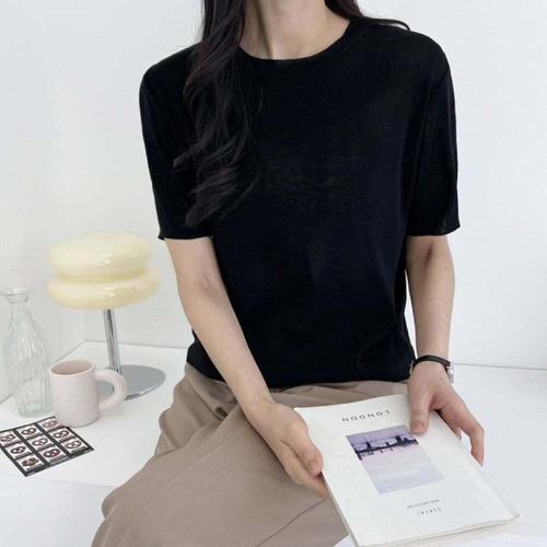 [셀럽하우스]베이직 HIGU8670 데일리웨어 여성 린넨 라운드 반팔 니트
