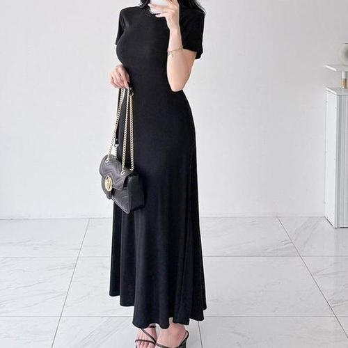 [다잇템_패션]여자 롱 미니멀리즘 후레아 반소매 원피스