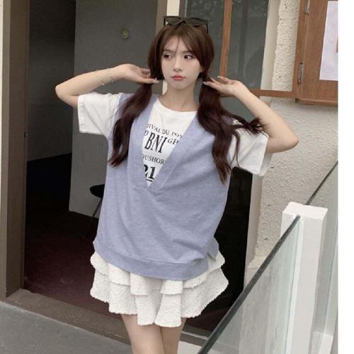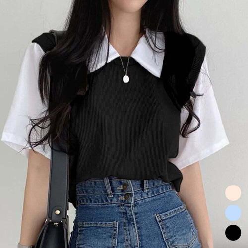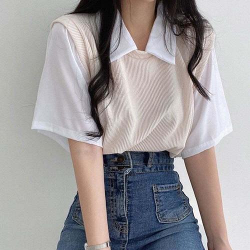 [셀럽하우스]러블리 MZIG2192 여자 셔츠 니트조끼 일체형 페이크 반팔티셔츠