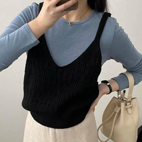 [룽스]가볍고 시원한 소재 뷔스티에 반팔티 니트 조끼