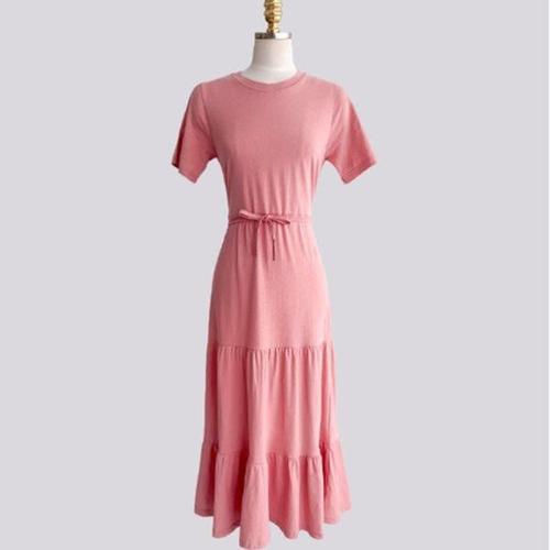 [옷자락]여성 심플 코튼 캉캉 스트링 반팔 롱 원피스