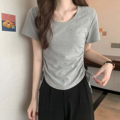 [셀럽하우스]여성 FAOP2703 5컬러 크롭티 유넥 슬림핏 옆셔링 반팔티셔츠
