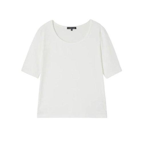 네모엔룩 탄탄코튼슬림 여성용 기본 슬림핏 이너 레이어드 여리 라운드넥 반소매 티셔츠