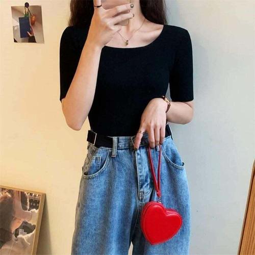 [셀럽하우스]여성 KIRV3858 슬림핏 반팔티셔츠 스퀘어넥