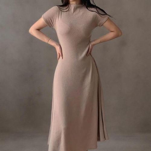 [신상오픈런]여성 가을 하객 드레스 반목 반팔 슬림핏 플레어 롱원피스