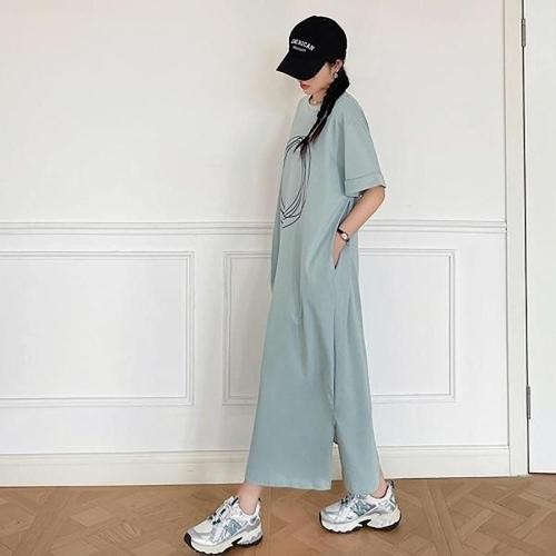 민트위니 여성용 반팔 롱 원피스 면100% 캐주얼 홈웨어 옆트임 잠옷 여름 빅사이즈