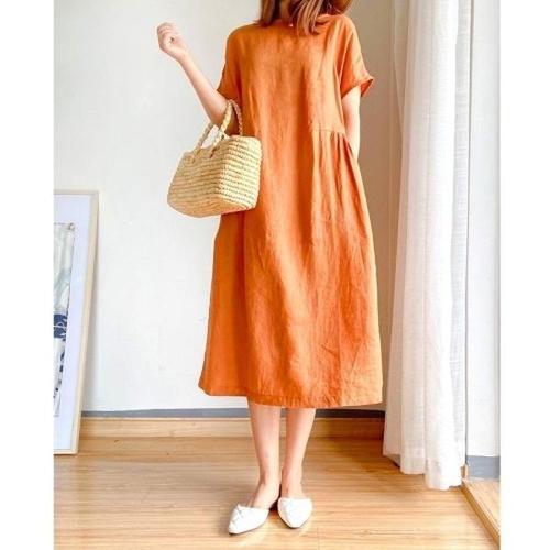 [엄지척]여성 라운드넥 여름 시원한 무지 면 반팔 원피스_19911561_667501
