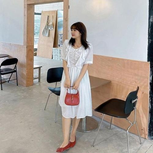 [엄지척]원피스 면스판 플레어 밑단 프릴 반팔원피스 좋은 롱_19913823_667501