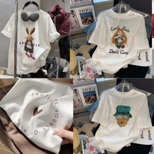 [셀럽하우스]여성 RWHK6919 기본 여름 반팔티 귀여운 프린팅 6종 모음