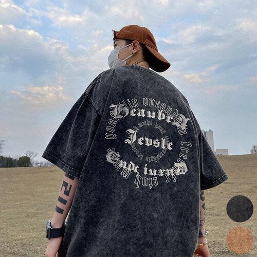 남자 스트릿 박스티 오버핏 반팔 레터링 캐주얼 패션