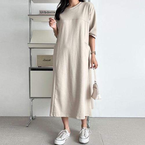 [옷자락]여자 빅사이즈 투포켓 절개 가을반팔 등원룩 롱원피스