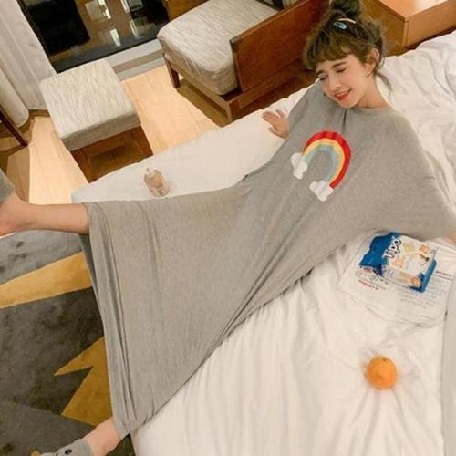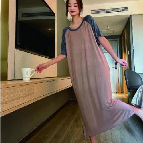 [모노무드]모노무드 여성용 반팔 수면 페어 홈 드레스 편안한 잠옷 원피스 형태