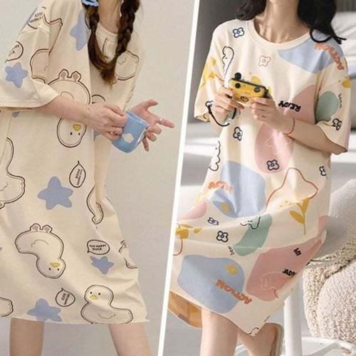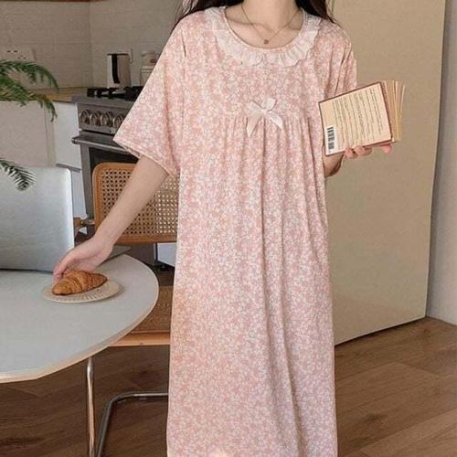 여름 롱 원피스 반팔원피스 반팔 잠옷 면 파자마 임산부 홈웨어 시원한여성잠옷 원피스잠옷 여자반팔