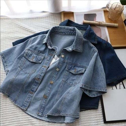 봄 셔츠 단정무드 소프트 여자 자켓 반팔 크롭 여름 여성 봄자켓 청자켓 데님재킷 봄패션 여자