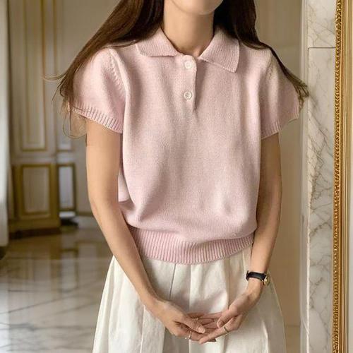 [다잇템]여자 벌룬소매 반소매 카라넥 시보리 니트