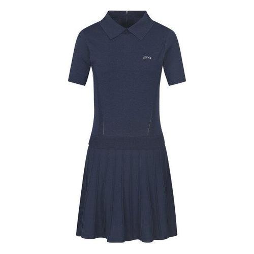 [핑]여성 라인 배색 니트 카라 반팔 원피스 121C1JO292_NA_CA