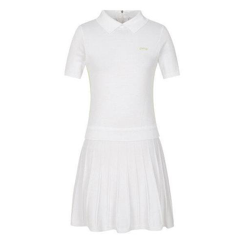 [핑]여성 라인 배색 니트 카라 반팔 원피스 121C1JO292_WH_CA