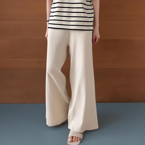 [미라클세븐]여성 스트라이프 카라 여름 반팔 니트와 밴딩 와이드 팬츠 세트