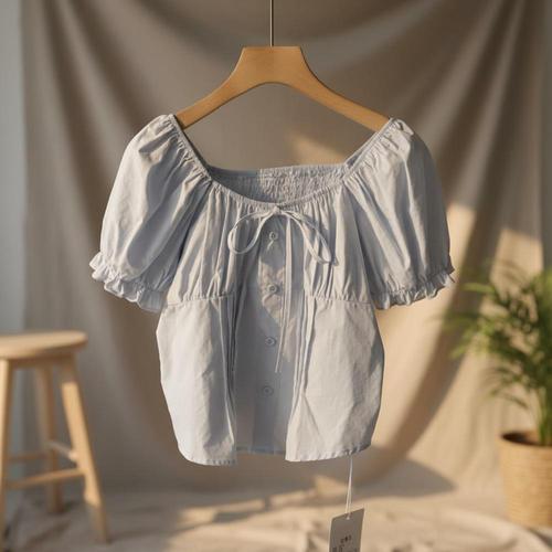 [셀럽하우스]시원한 CYMG5596 소매 블라우스 반팔 여자 스퀘어넥 퍼프 여름