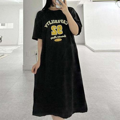 여성 빅사이즈 캐주얼 레터링 면 라운드 긴팔 롱 원피스 홈웨어 꾸안꾸 OP0510루즈핏 오버핏 여자 가을