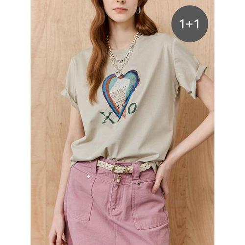 1+1 레이블링 여성용 기본 반팔티 티셔츠 반소매