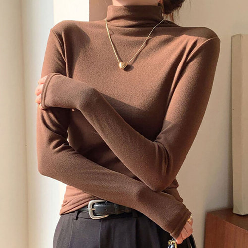 [셀러에이드]슬림핏 여성 목폴라 폴라티 데일리 여성 기모 티셔츠 기본 셔츠