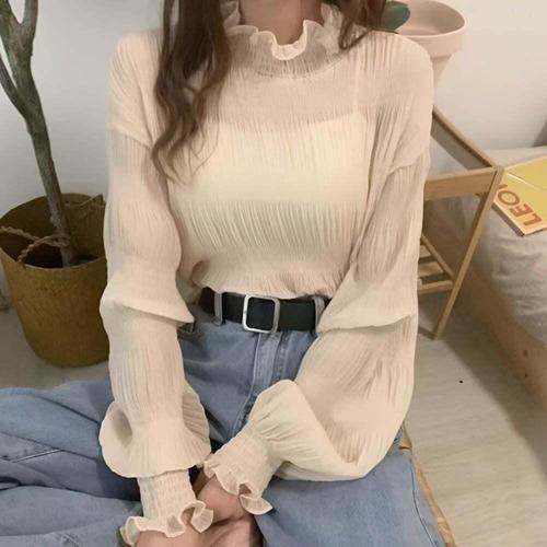 [셀럽하우스]여성 XQOA6420 퍼프 주름 반폴라 긴팔 블라우스 예쁜 데이트룩