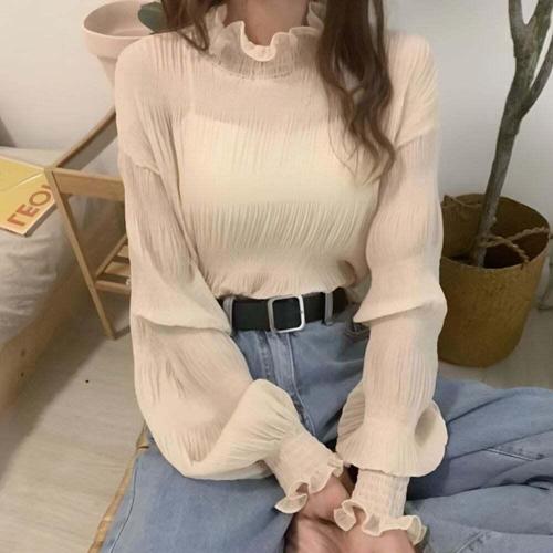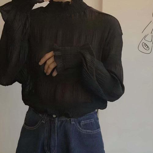 [셀럽하우스]주름디자인 BMZT5819 퍼프소매 반폴라 여성스러운 블라우스