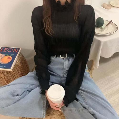 [페이릿] 퓨드 반폴라 프릴 시스루 블라우스