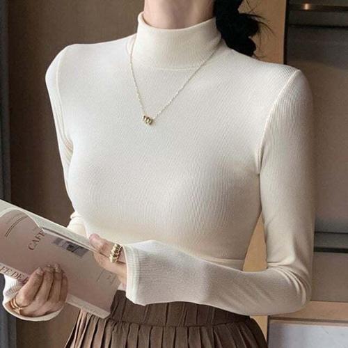 여자 골지니트 반목 하프넥 긴팔 슬림핏 이너티 3색 WFKMZ11