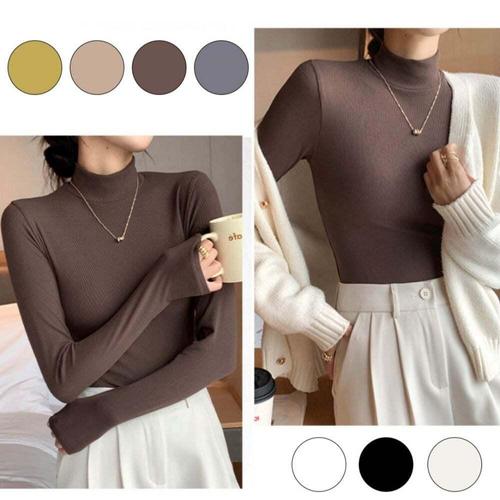 반목 여자 6color 반폴라 골지니트 답답함없는 티셔츠 WFLOZQS