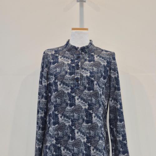 [벨리시앙]기하학 패턴 반하이넥 스판 블라우스(2color) BL4307