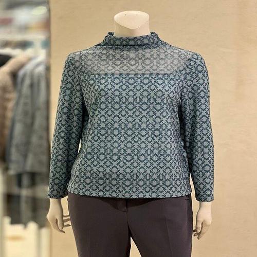 [벨리시앙]벨리시앙 세이브존01 기하학 패턴 반하이넥 스판 블라우스(2color) BL4307 (41563105)