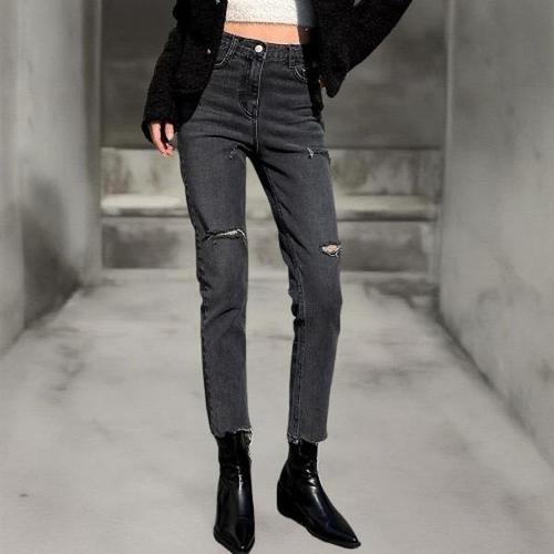 [다잇템][다잇템] 여성 진 타이트 컷오프 반하이 그런지 검정 편한 청바지_23915538_588872
