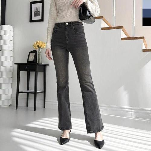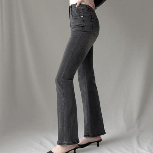 [신상오픈런]여성 심플 워싱 히든밴딩 반하이 세미부츠컷 청바지