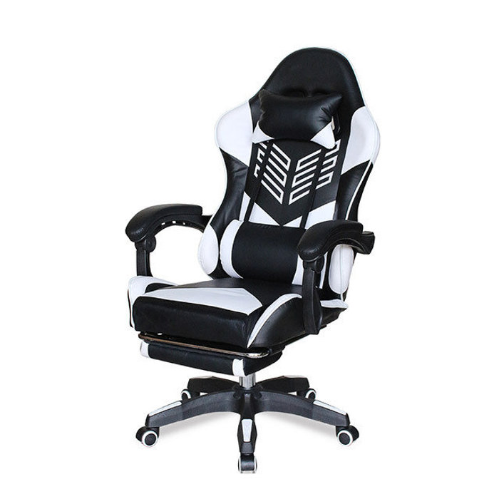 게이밍의자 각도조절가능 발받침 포함 컴퓨터의자 회전형 승강 사무용 의자 게임의자 인체공학, 검정+화이트