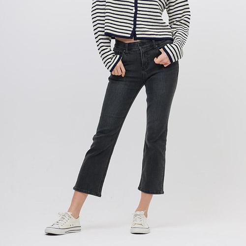 [잠뱅이]여성)그레이 오비안밴드 바이오스톤워싱 발열기모 슬림NE 핏변형(크롭)_AM4DNE754-GY