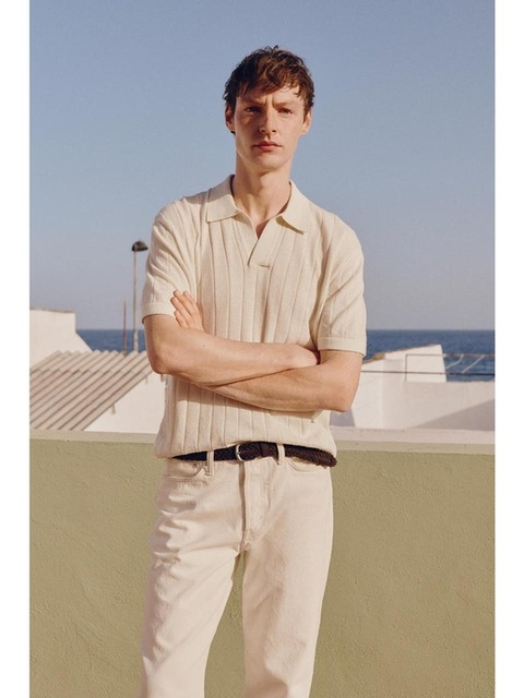 [에이치엔엠] 리넨 블렌드 폴로셔츠 레귤러핏 크림 1286041001