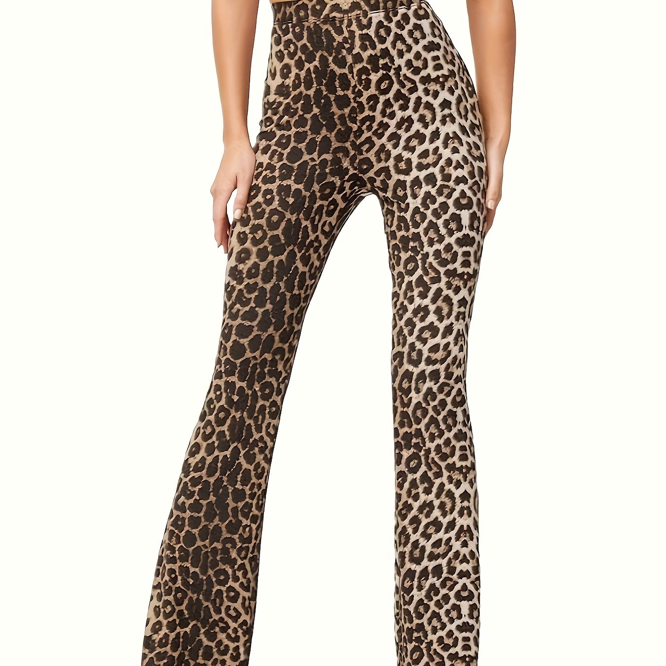 TEMU 여성용 프린트 플로랄 스트레치 편안한 플레어 팬츠