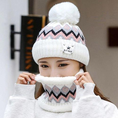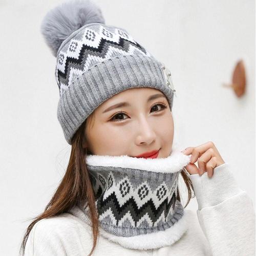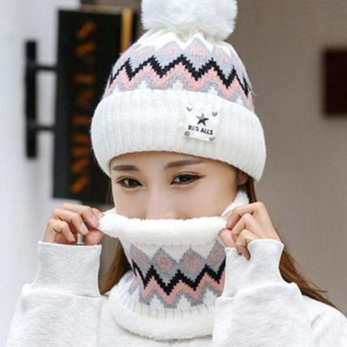 여성 5컬러 겨울 기모 소재 빅방울 비니 넥워머 세트 WFFJJ3K