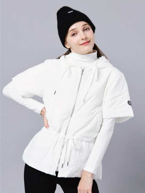 [두유노우엠씨] 25FW 웰론 경량 패딩 후드 집업 반팔 화이트 바람막이